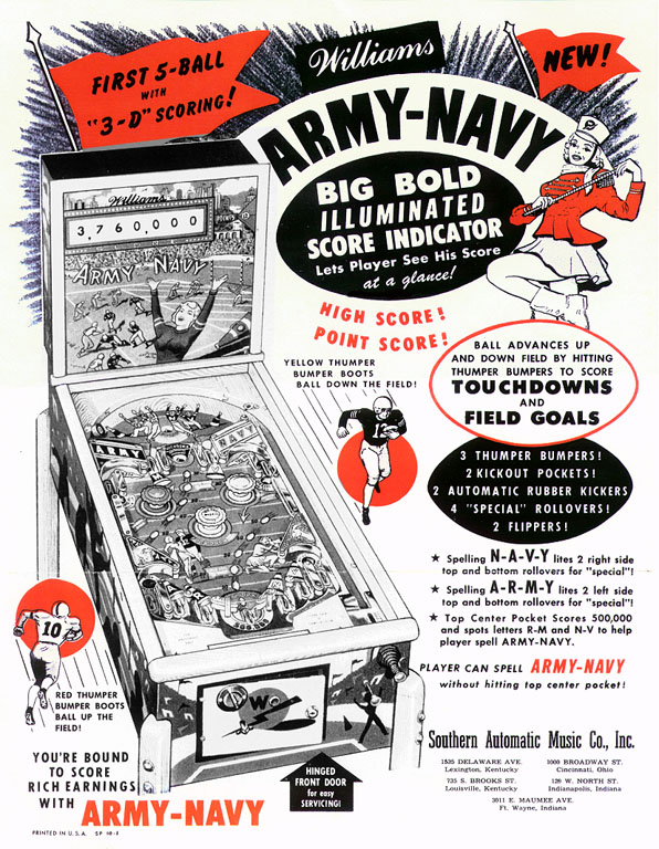 Army Navy de fabricado por Williams en 1953, primero con marcador tipo "caja registradora", score reel en inglés.