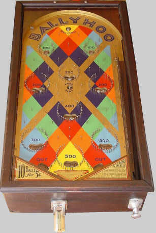 En 1932 Raymond Moloney, un distribuidor o revendedor de máquinas Gottlieb, se siente frustrado por la dificultad para conseguir máquinas para revender, ya que debido al éxito de Baffleball, la fábrica no se daba abasto con los pedidos. Entonces piensa que en la fabricación de máquinas hay un excelente negocio y decide crear su propia compañía 'Lion Manufacturing', la cual después se renombró como Bally Manufacturing Co. La primera máquina que fabricó fue la "Ballyhoo", logrando vender más de 50.000 unidades en siete meses. Con un playfield más grande que su competidor (Baffle Ball) y diezorificios de captura se gano rápidamente la preferencia del público, dando dura batalla a Gottlieb.