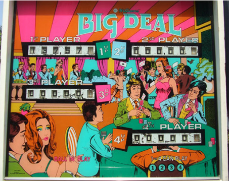 | 1963: Slick Chick con un solo marcador de apenas tres dígitos. | 1970: Big Brave con dos marcadores de cuatro dígitos. | 1977, Big Deal con cuatro marcadores de 5 dígitos. |