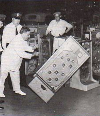 Lamentablemente el hecho de entregar dinero como premio causa que en muchas ciudades de EEUU los flipper sean declarados tan ilegales como las tragamonedas. En 1943 le toca el turno a Nueva York y su alcalde no pierde el tiempo luciéndose en la labor de destruir tragamonedas y flippers frente a las camaras de reporteros gráficos y cinematográficos (hay filmaciones de estas espantosas acciones). Esta "prohibición" de jugar flipper duró bastante, por ejemplo, en New York fue ilegal jugar flipper hasta 1976, año en el cual fue derogada.