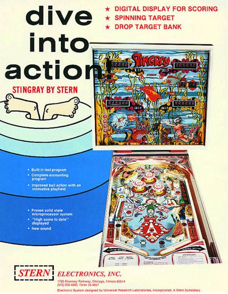 Stingray  de Stern. Otros títulos de esta época: Meteor, Galaxy, Ali, Big Game, Seawitch, Quicksilver, Flight 2000. Todas fueron muy conocidas y jugadas en Chile.