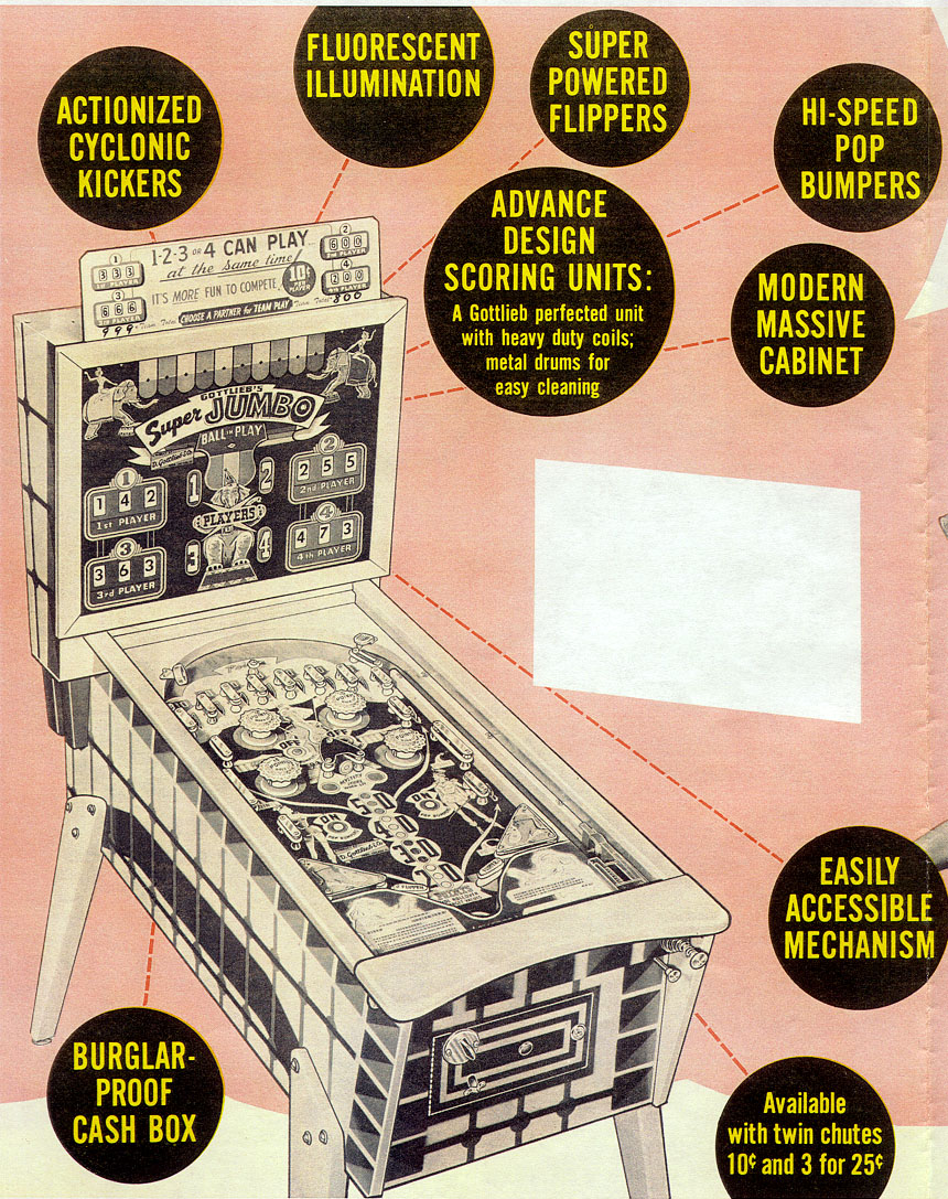 Super Jumbo fabricado por Gottlieb en 1954, primero con capacidad para cuatro jugadores.